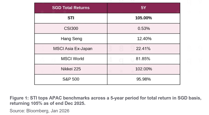 Whilst investor interest has been focused on how the MAS EQDP programme can sustain a revival in the Singapore Equity Market, it is also important to consider that the overall STI Index is already riding on the tailwinds of Singapore being a beneficiary of global geopolitical uncertainty, which may last for many years beyond 2026. The opportunity for investors is to recognize that the liquidity, from the thematic of global funds seeking safe haven, has the ability to drive the re-rating of the Singapore Equity Market. This can further attract more growth companies to populate the growing number of stocks listed on the Singapore Exchange, thereby creating a virtuous re-rating cycle and growth narrative for the overall Singapore Equity Story.
